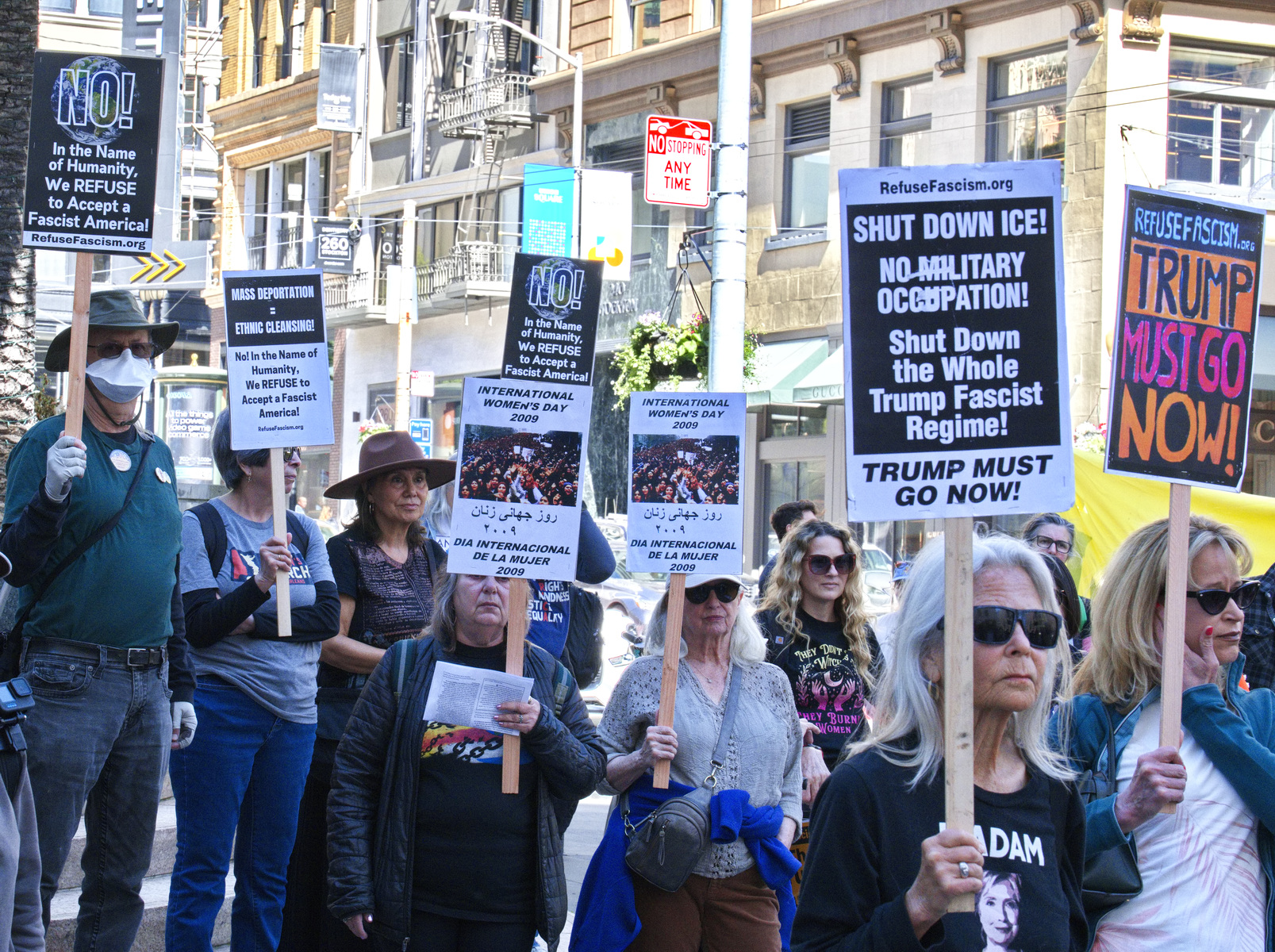 (San Francisco, March 8) - Bay Area activists don't give up. Fresh off responding to a week of unending outrages from the most malevolent government the US has ever had, protesters rallied in Union Square to celebrate International Women's Day.As similar actions were held throughout the Bay Area and the world, protesters attacked not only the never ending attacks on women, but ICE terrorism and the war crimes of the Trump regime.