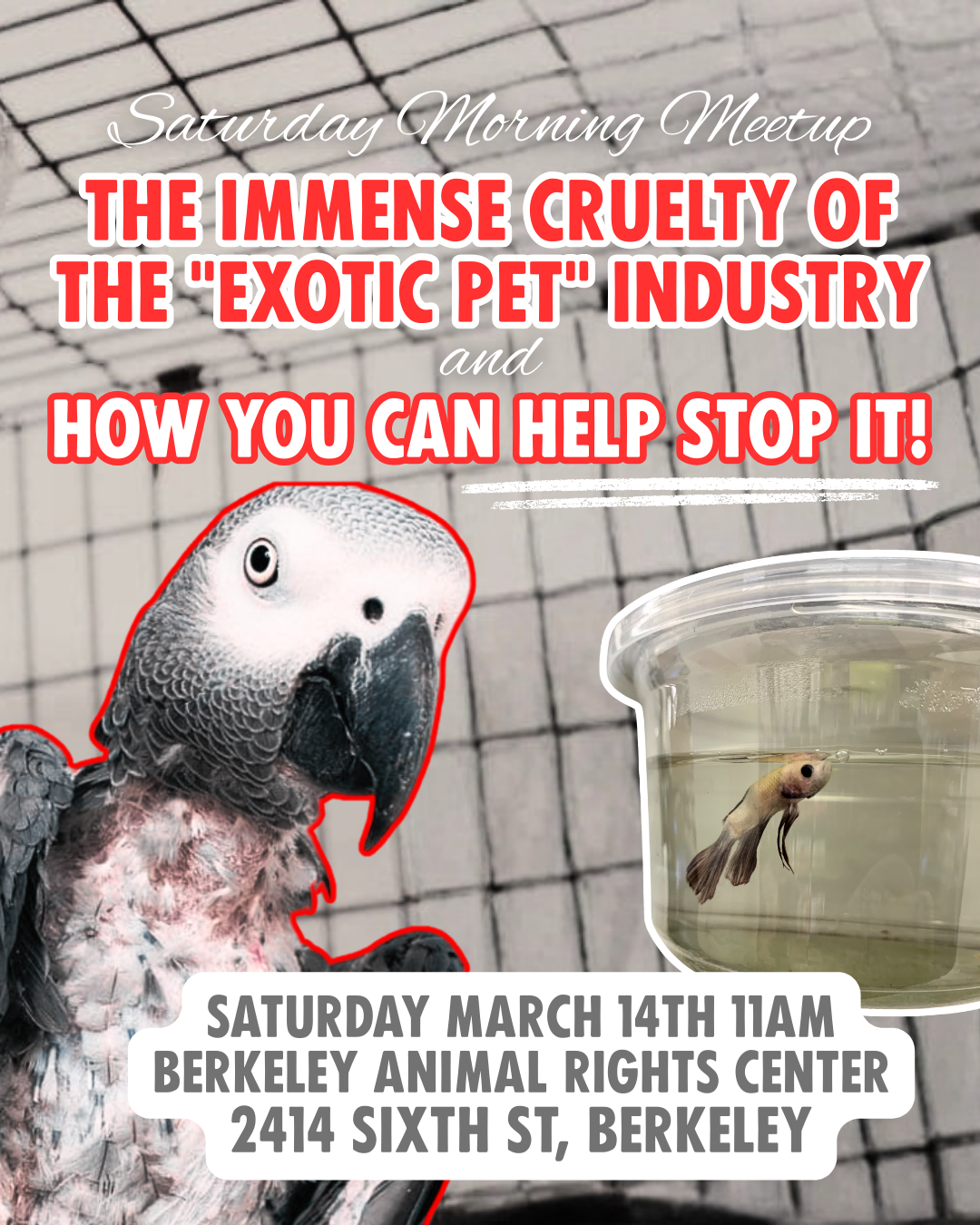 Join us this Saturday, March 14th, at 11am at the Berkeley Animal Rights Center (2414 Sixth St, Berkeley) for the Meetup!
