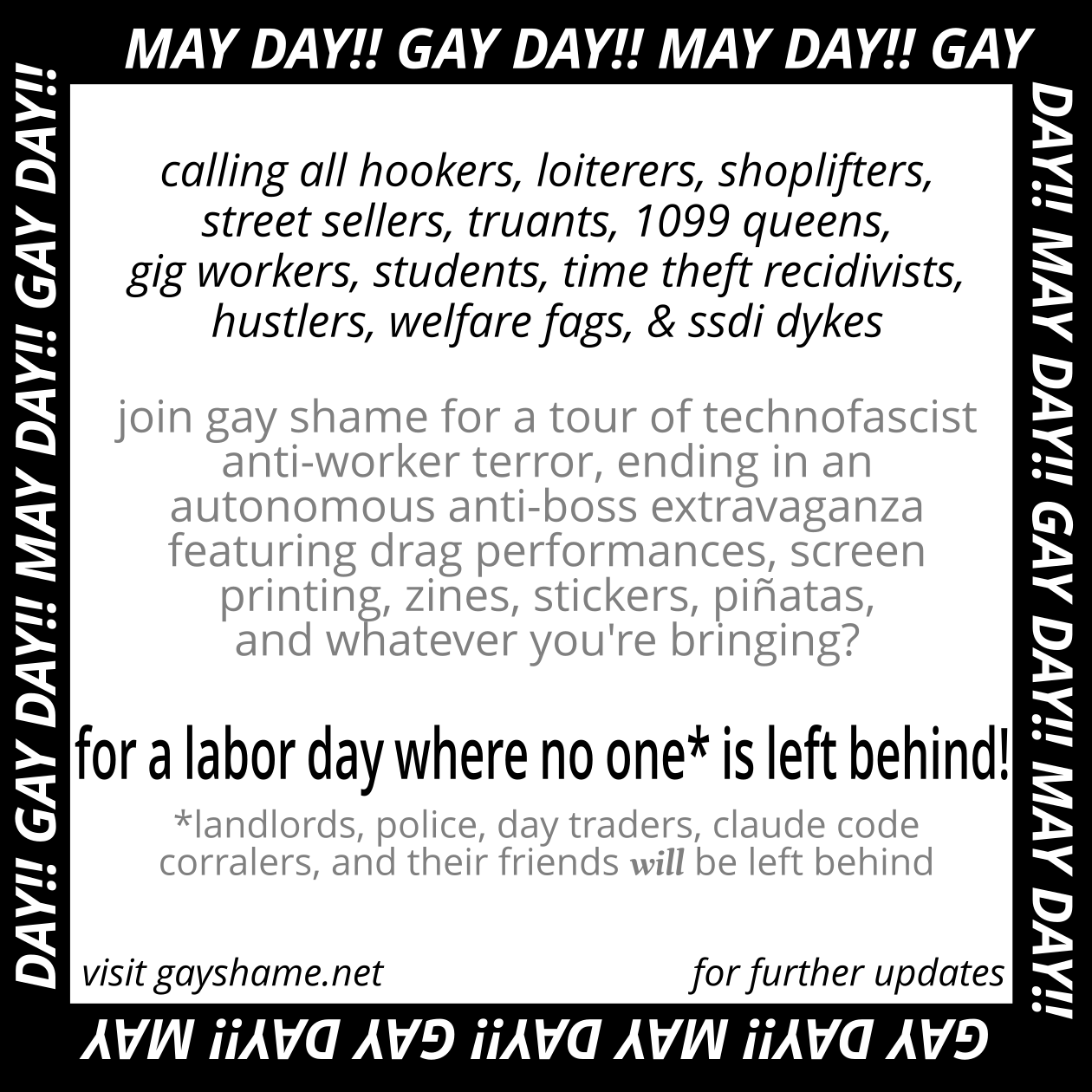 may day! gay day! queer & trans non/workers of the world unite!
