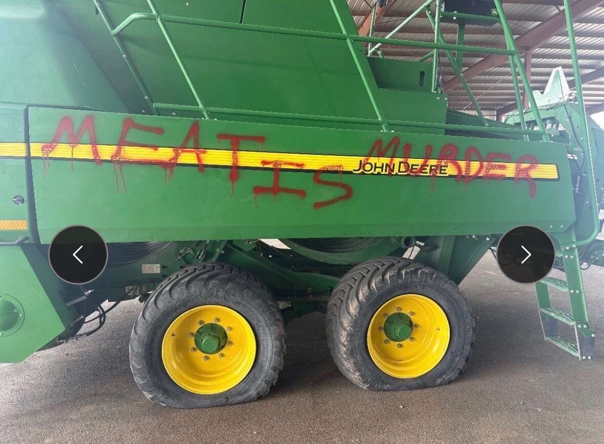 Farmer Ranon Reber stated, “We got here and went looking and we realized that they had actually been drilling holes through the sidewalls of the tires, breaking off the valve stems and stuff and just causing problems." Reportedly, 16 tires were slashed, and two tractors were spray painted with “Meat is Murder” and “A-L-F”. Reber says each tire costs him around $2,500 and, in total, repairs will likely cost him upwards of $40,000.