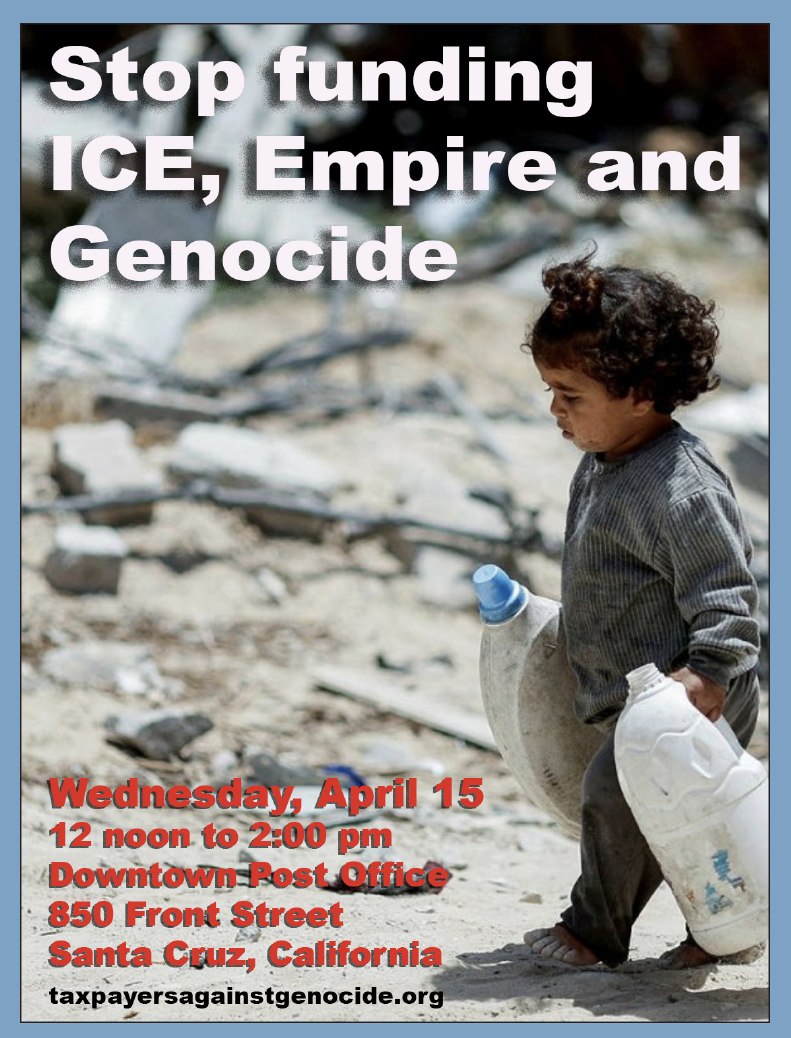 Protest your taxes going to fund aggressive, unnecessary wars, ice raids and growing militarism instead of vital human services and a clean, sustainable environment.