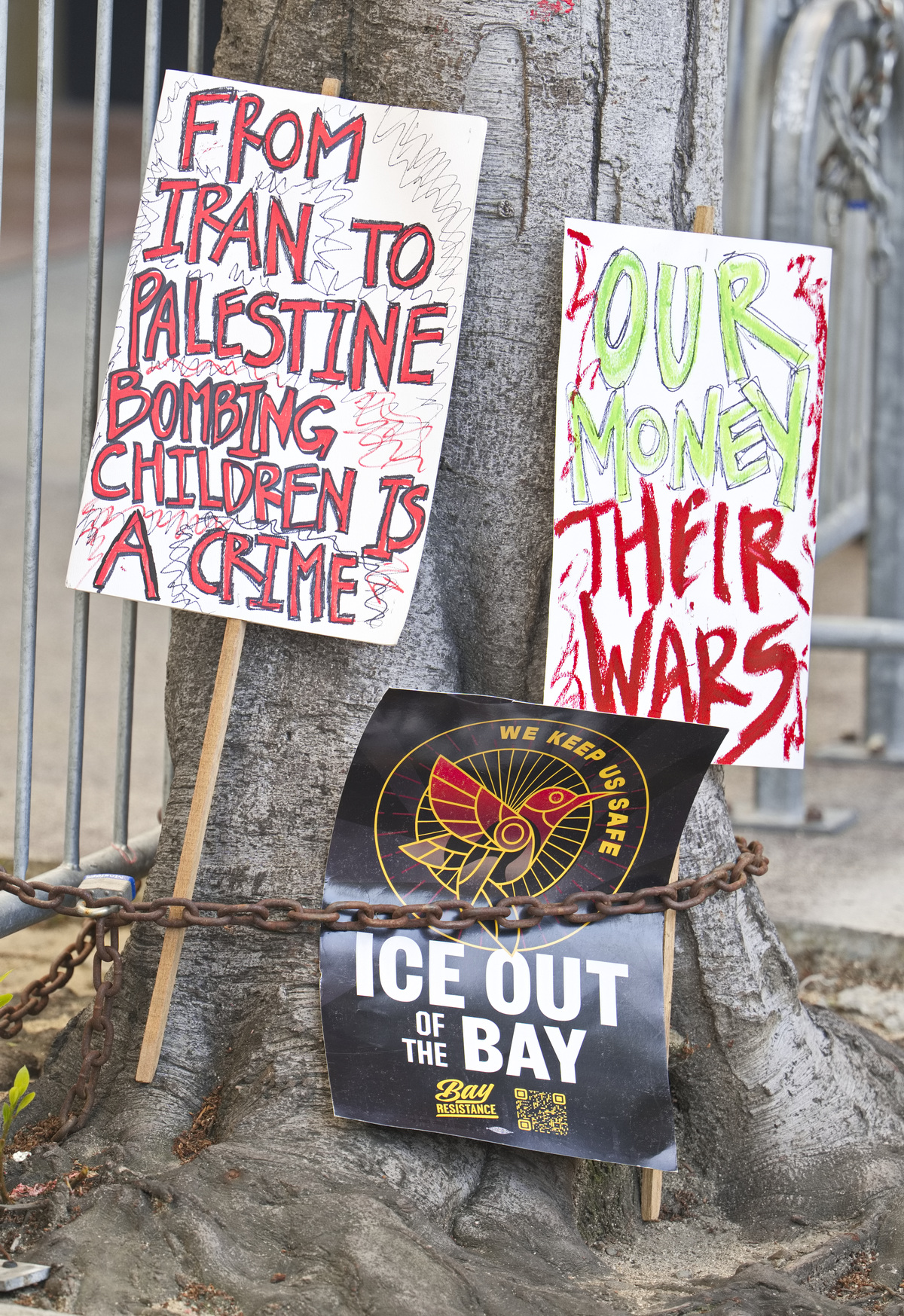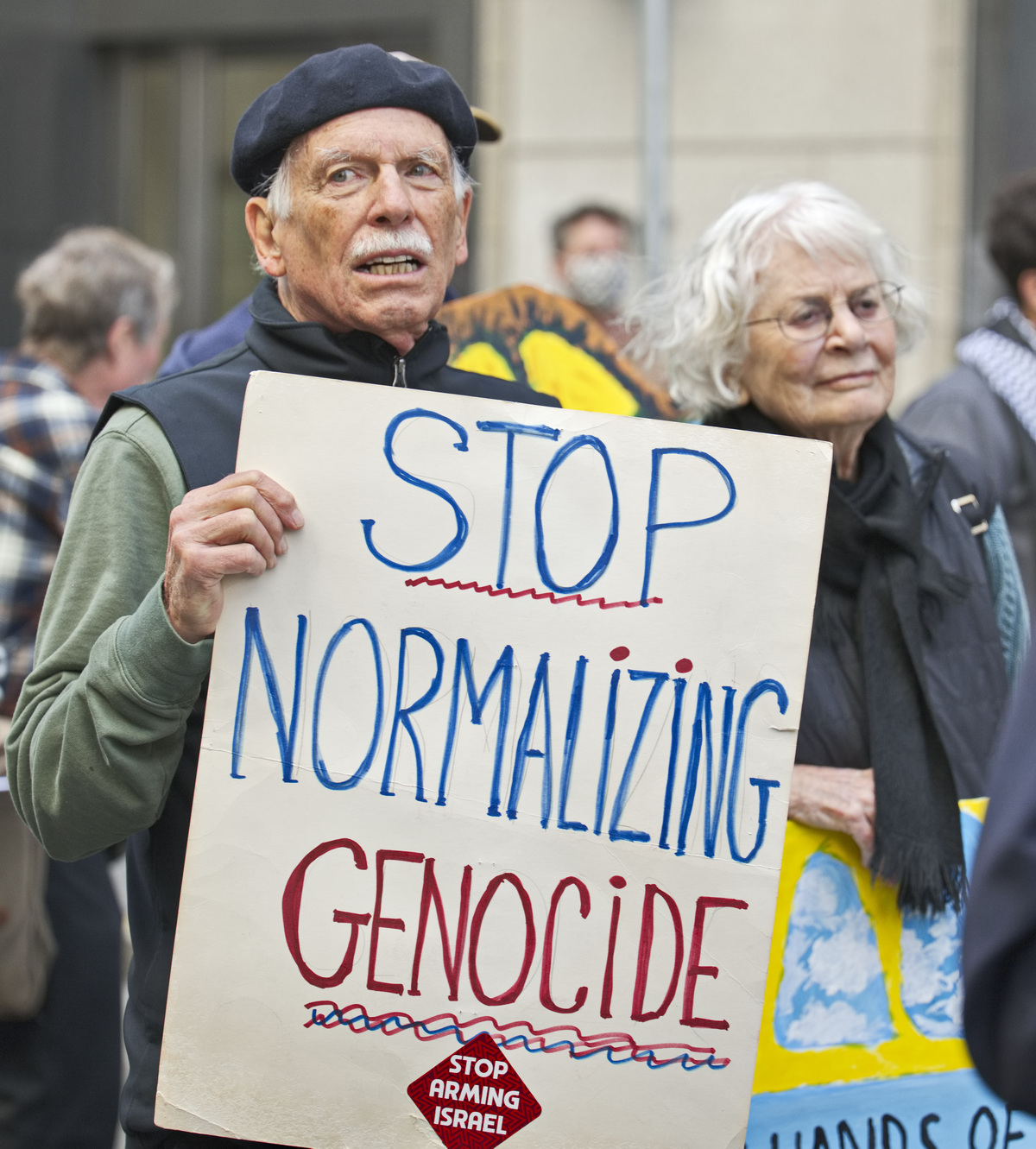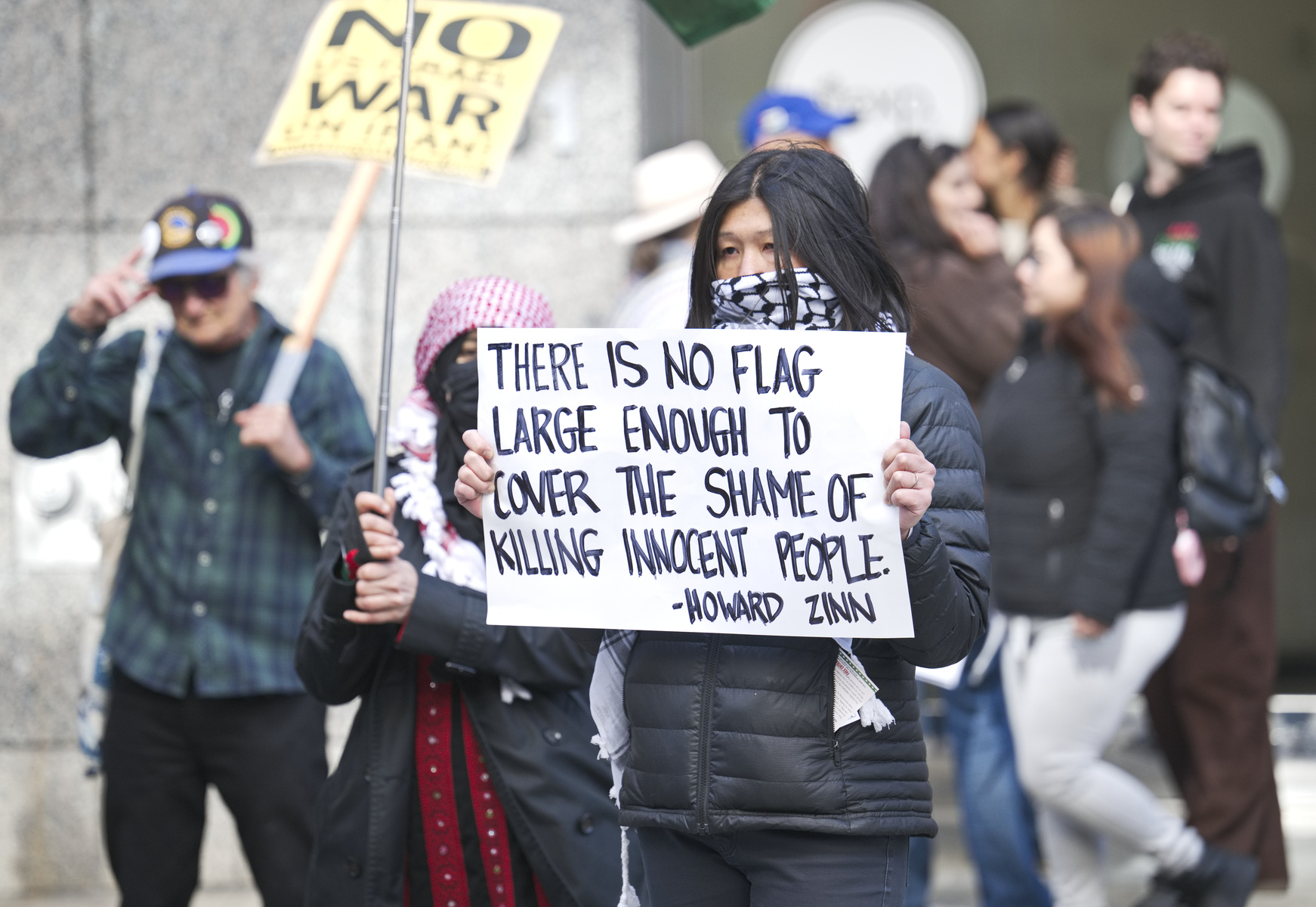 After the rally in front of the Israeli consulate, the demonstrators marched a few blocks to the Sansome Street building that houses ICE and then held another rally.
