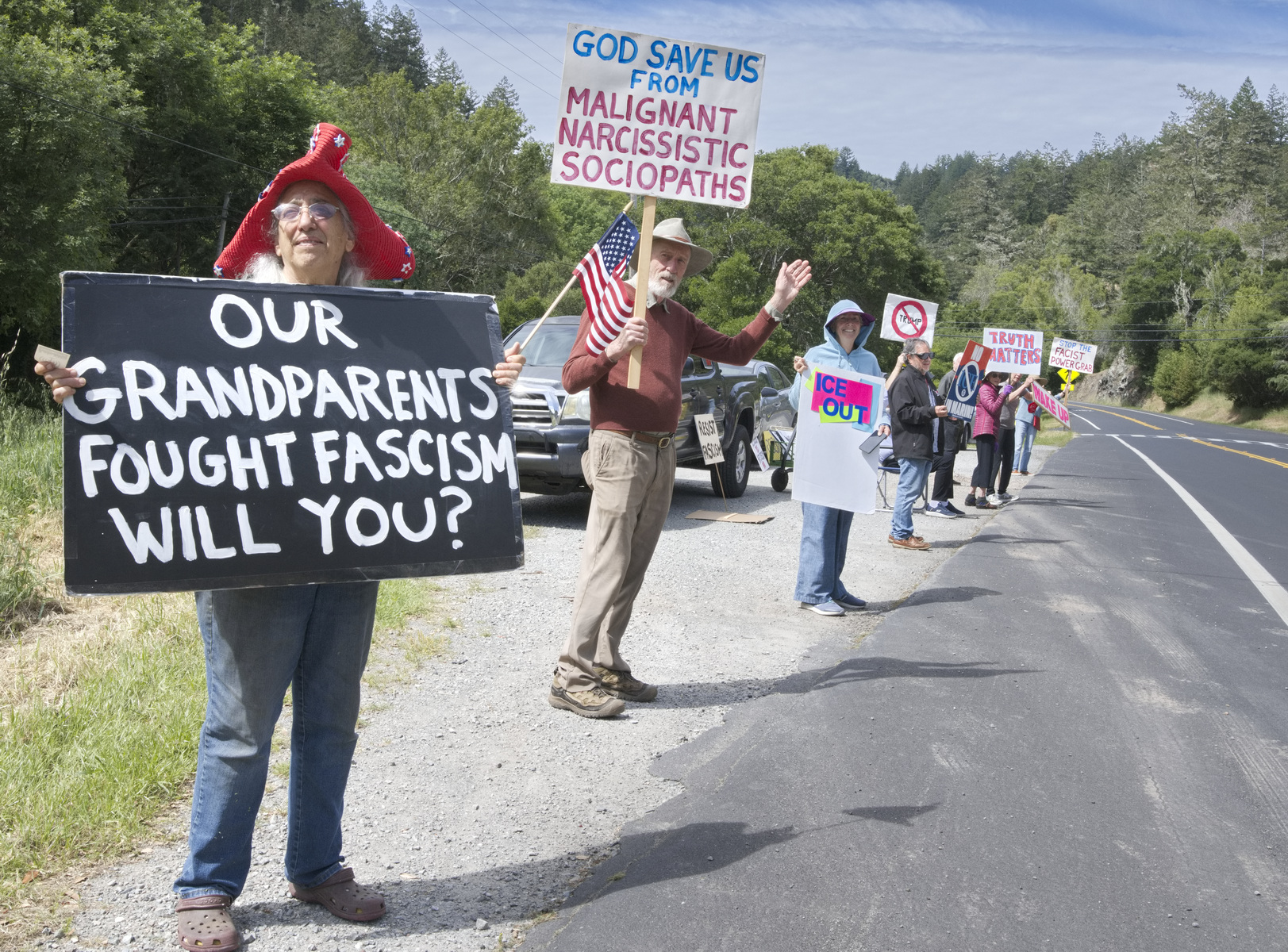 Indivisiblesgv.com is now holding weekly protests at the intersection of sir Francis Drake Blvd.and Arroyo road in Lagunitas on Sundays at 11am. There are also weekly protests at the Hub in San Anselmo.
